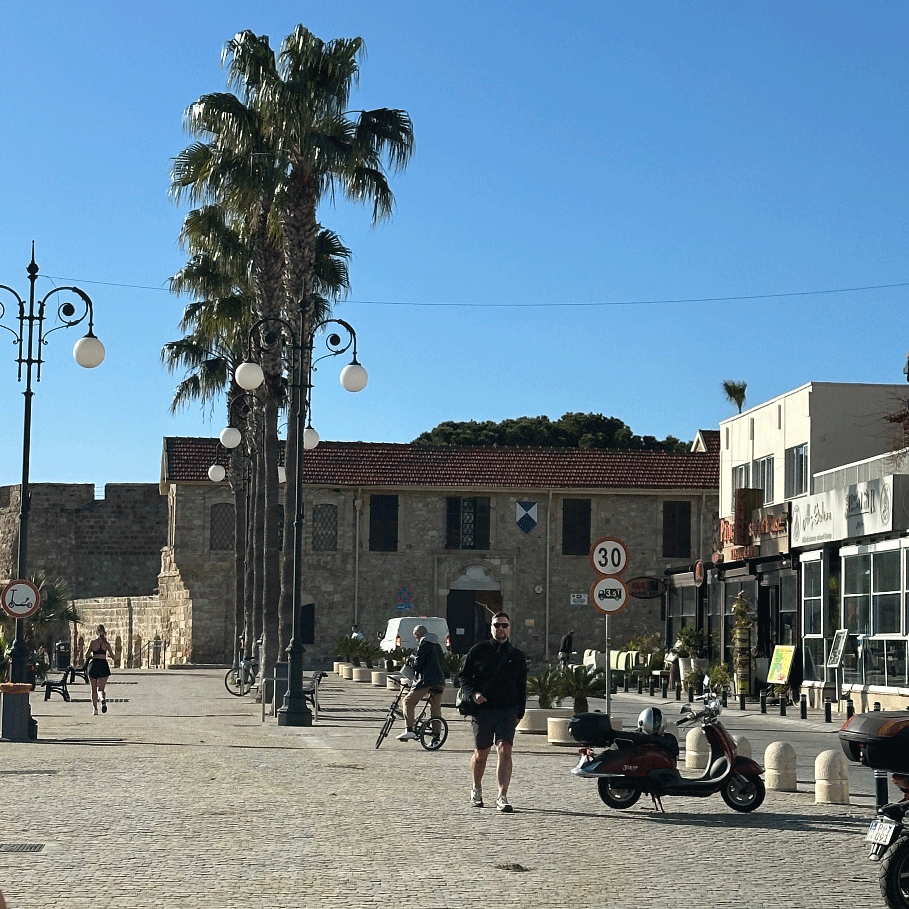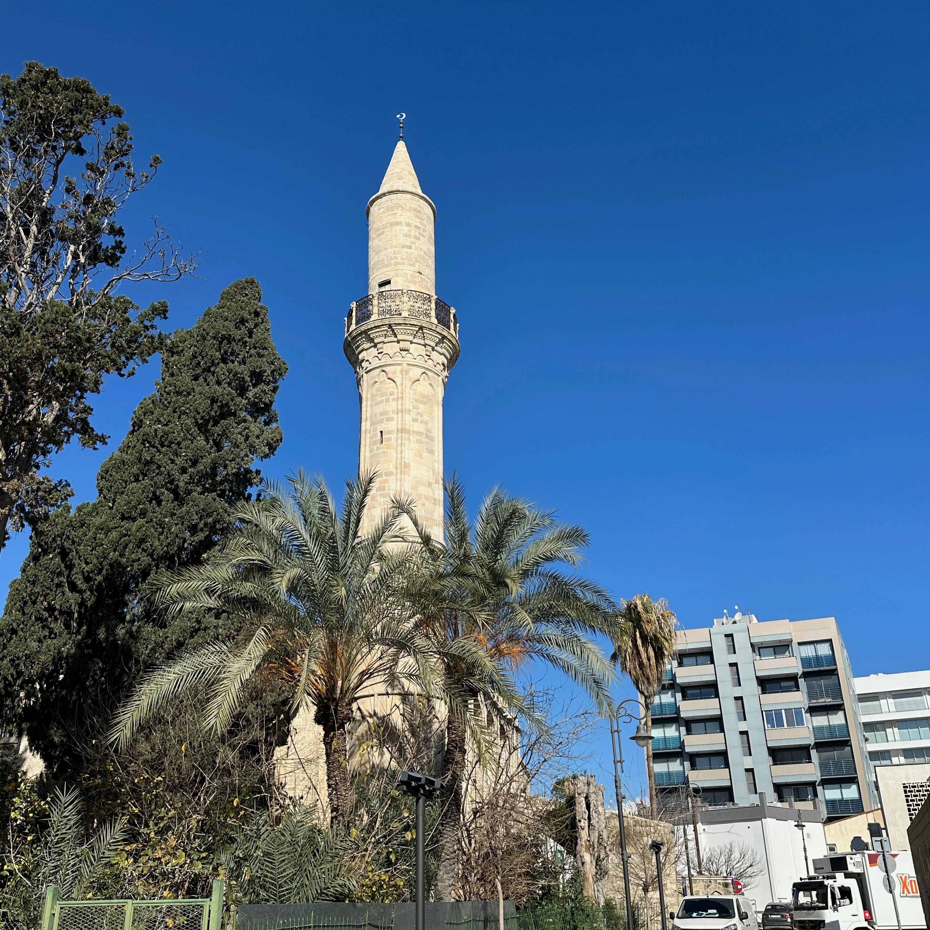 If you walk along the boardwalk, you will pass Larnaca Castle, a physical reminder of Larnaca’s long history. This has been a defensive site since Byzantine times, but the current fortress was likely built in the 1300’s AD, and then repurposed by the Ottoman’s in the 1600’s. Despite it’s uncertain provenance, it is worth the small entry fee (2 euros) and 20 minutes of your time to stroll the grounds and climb the ramparts for great views of the Mediterranean. There is a small museum with a few cabinets containing medieval artifacts and some wall displays of old photos of the harbor.