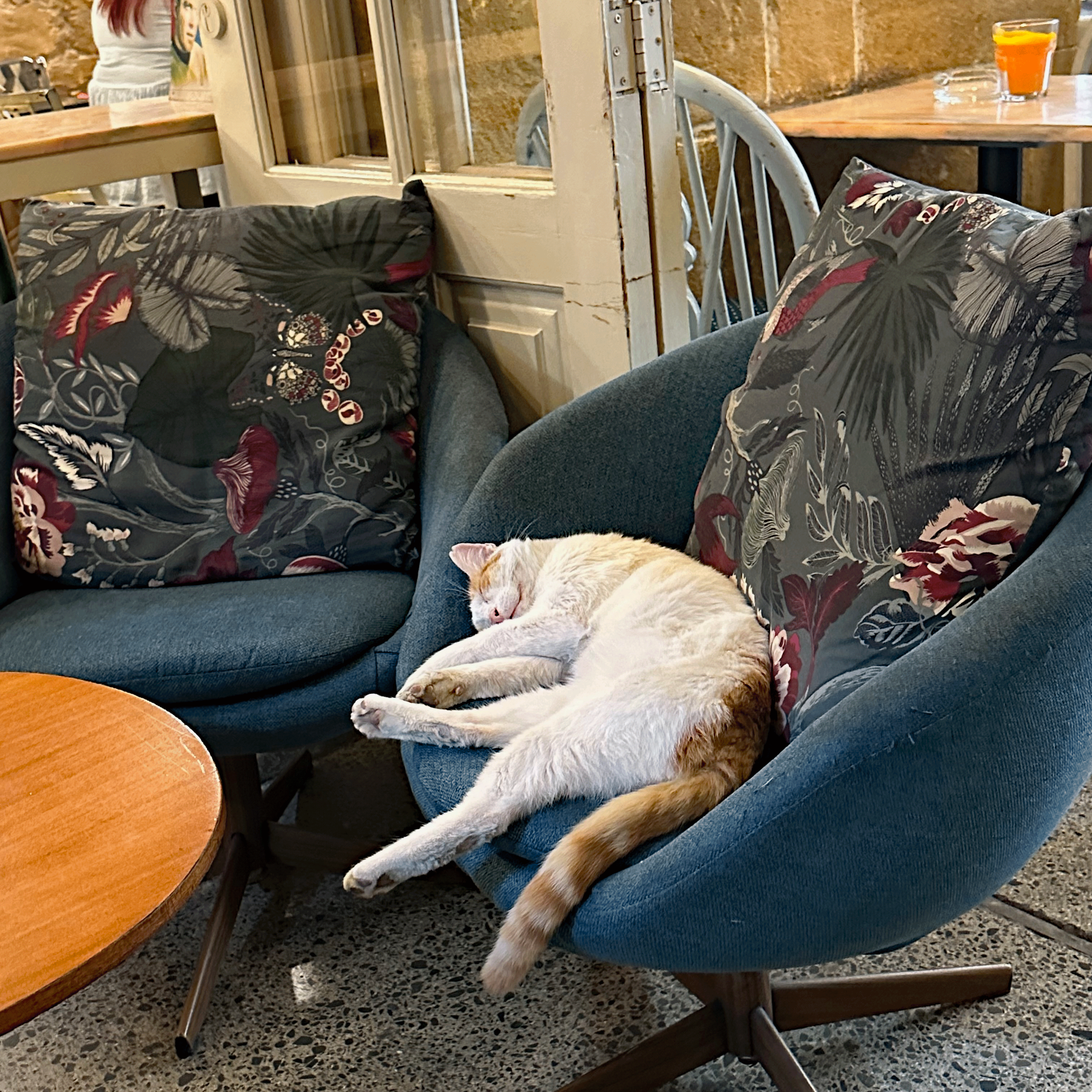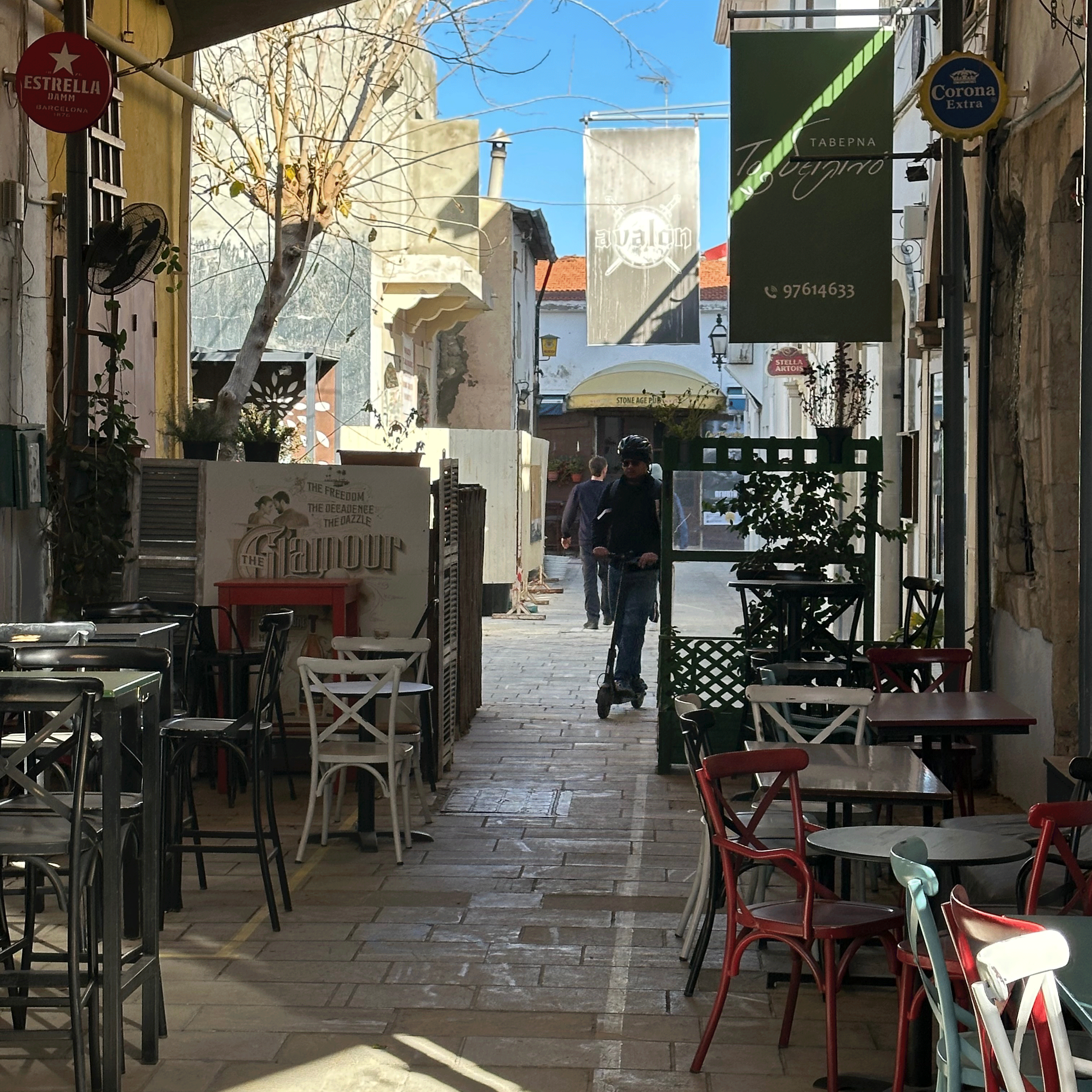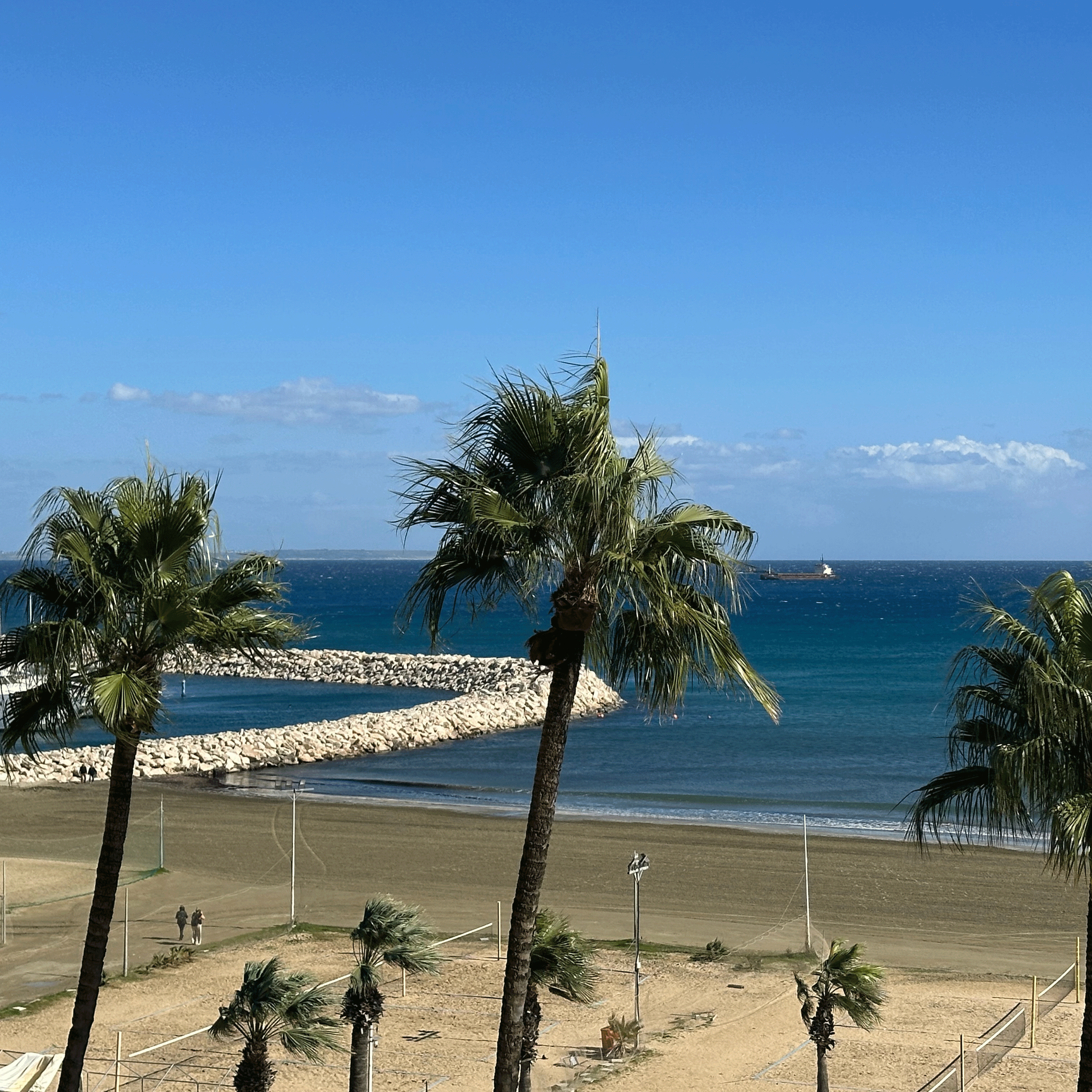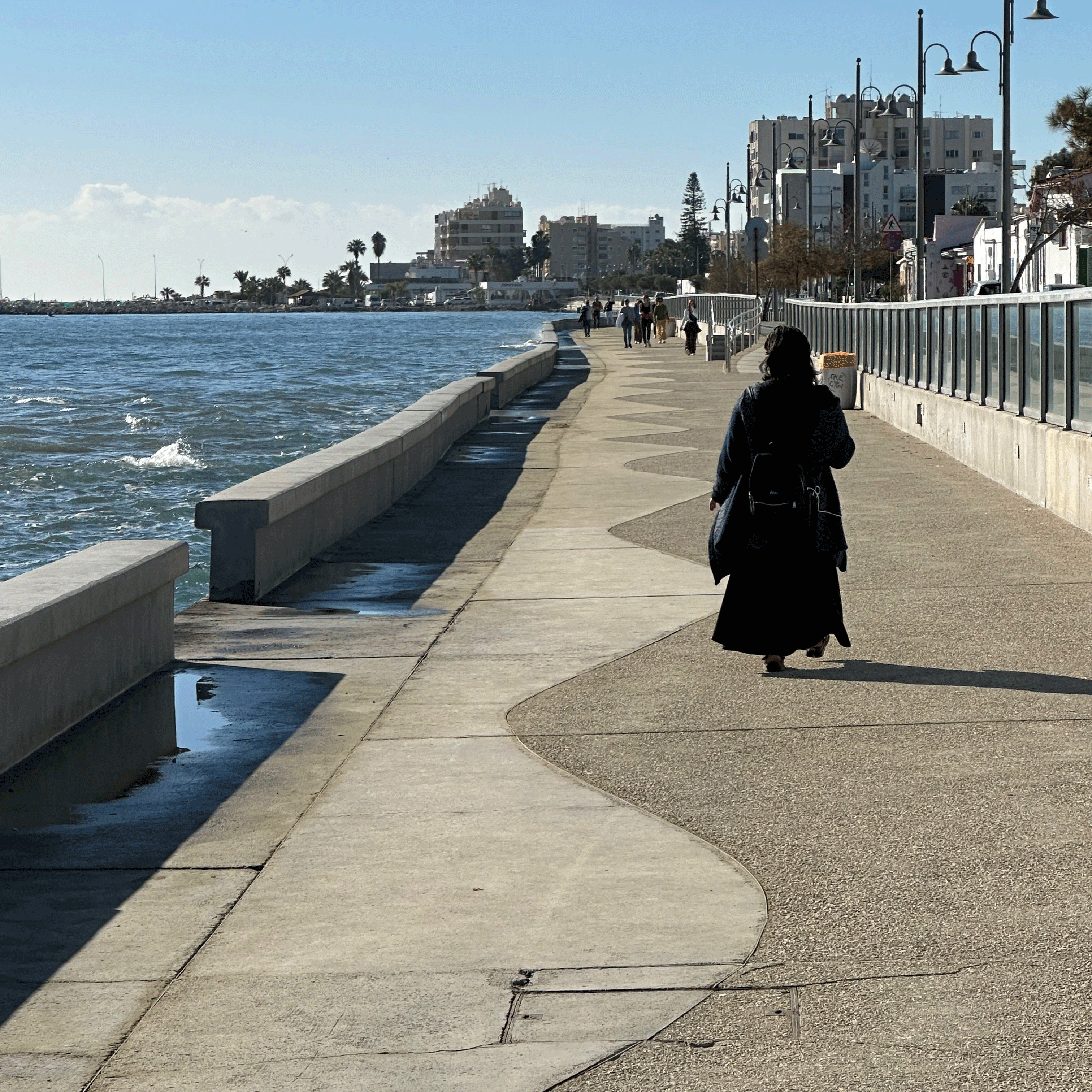 We flew Aegean Air from Athens to Larnaca, about an hour and a half flight. Larnaca Airport is small and easy to navigate. We had arranged a taxi driver through our Air B and B host and after a 30 minute ride, we arrived at Finikoudes Beach. Our rental apartment was perfectly situated along the boardwalk and had beautiful seaside views. We were walking distance to everything we needed. There was a well-stocked mini-mart next door, owned and operated by a delightful Cypriot family. Multiple dining options and coffee shops line the beachfront. I could drink coffee in a different spot every day. And it is always served with a cookie and a smile!