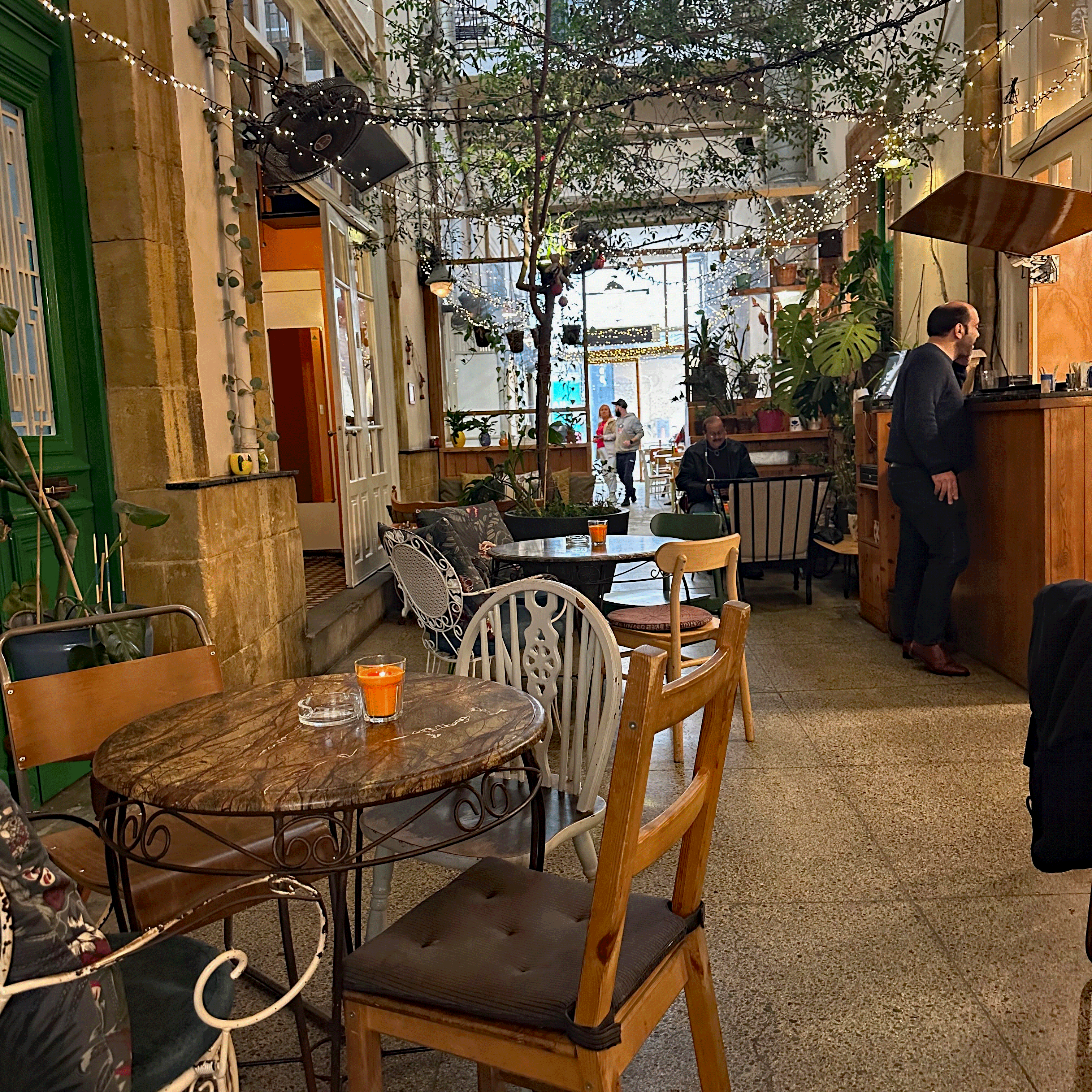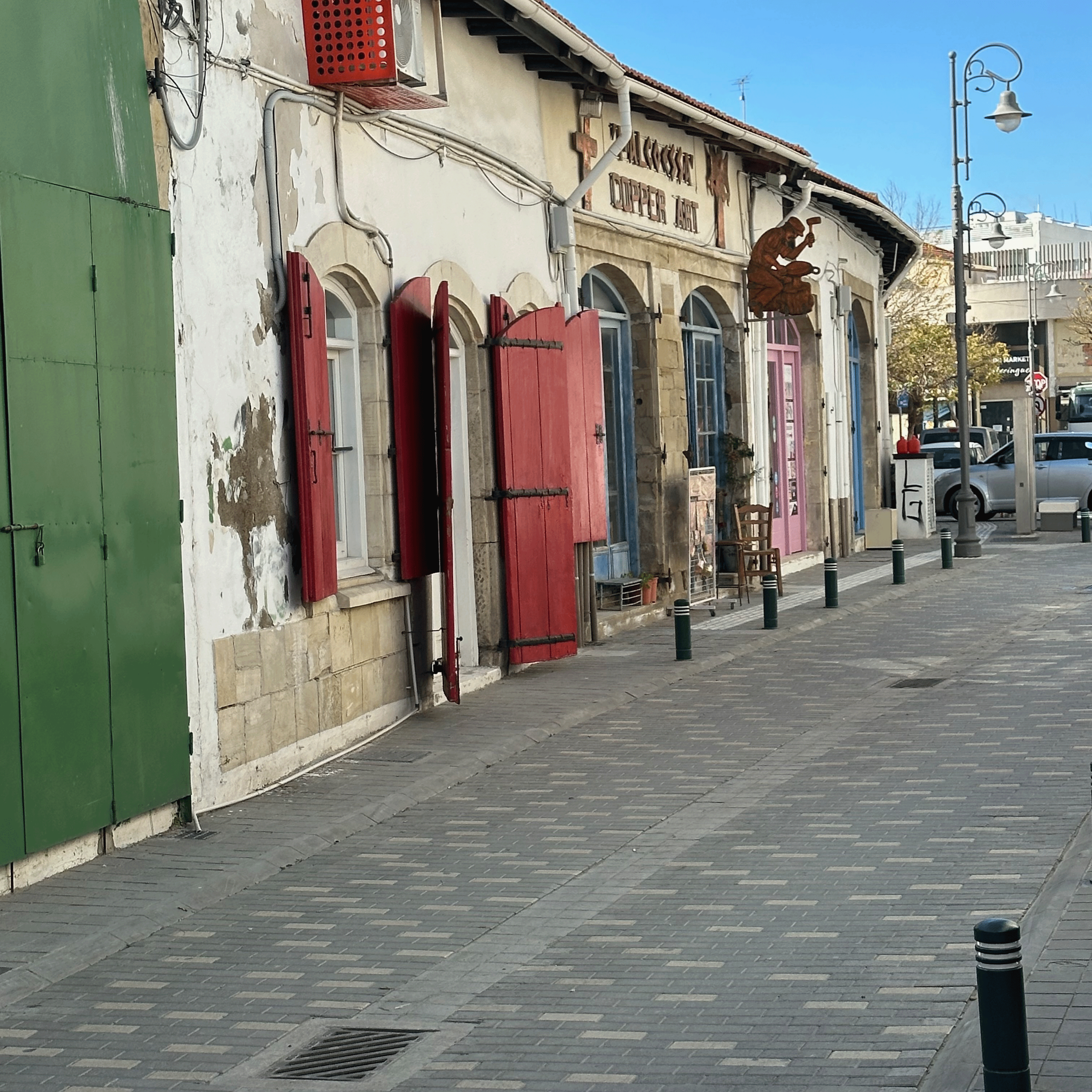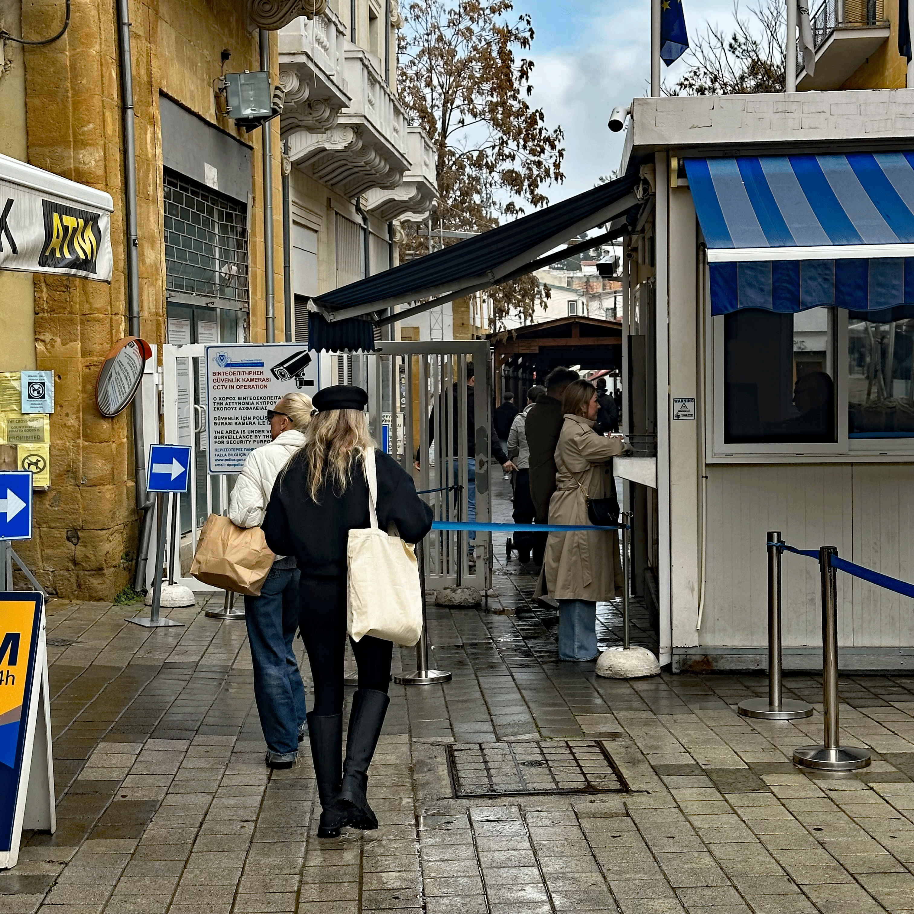When we came out of the museum, the rain had let up. We walked toward the historic center in search of a coffee and some food. We found a cozy spot for a typical Cypriot brunch. Ledra Street is the pedestrian area lined with shops and restaurants. At one end of Ledra street is an unassuming booth. That is a checkpoint to enter the Turkish side. Although we had fully intended to cross, we realized we had left Larnaca without our passports. Those were safely stowed back at our apartment and we were carrying our passport cards, which might have sufficed, but we weren’t willing to chance it. Since we just toured Turkey last October, we weren’t too devastated. My passport has a Turkish stamp. Still, if you go to Nicosia, remember your passport! (and take some photos for me)