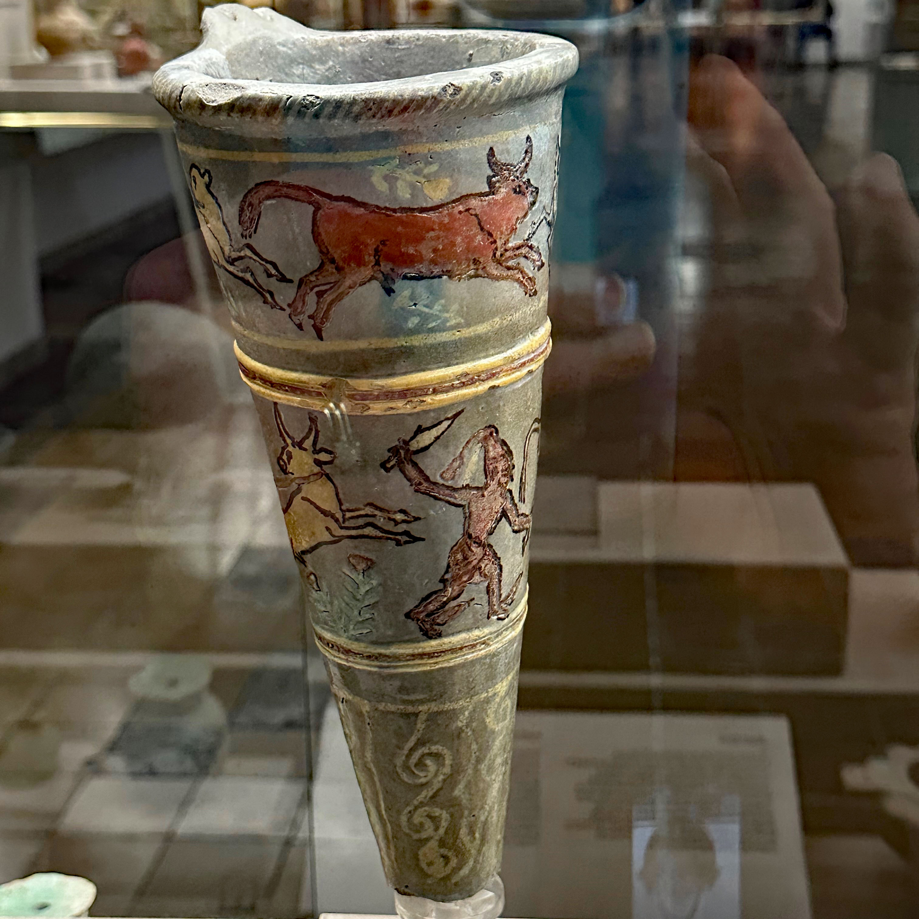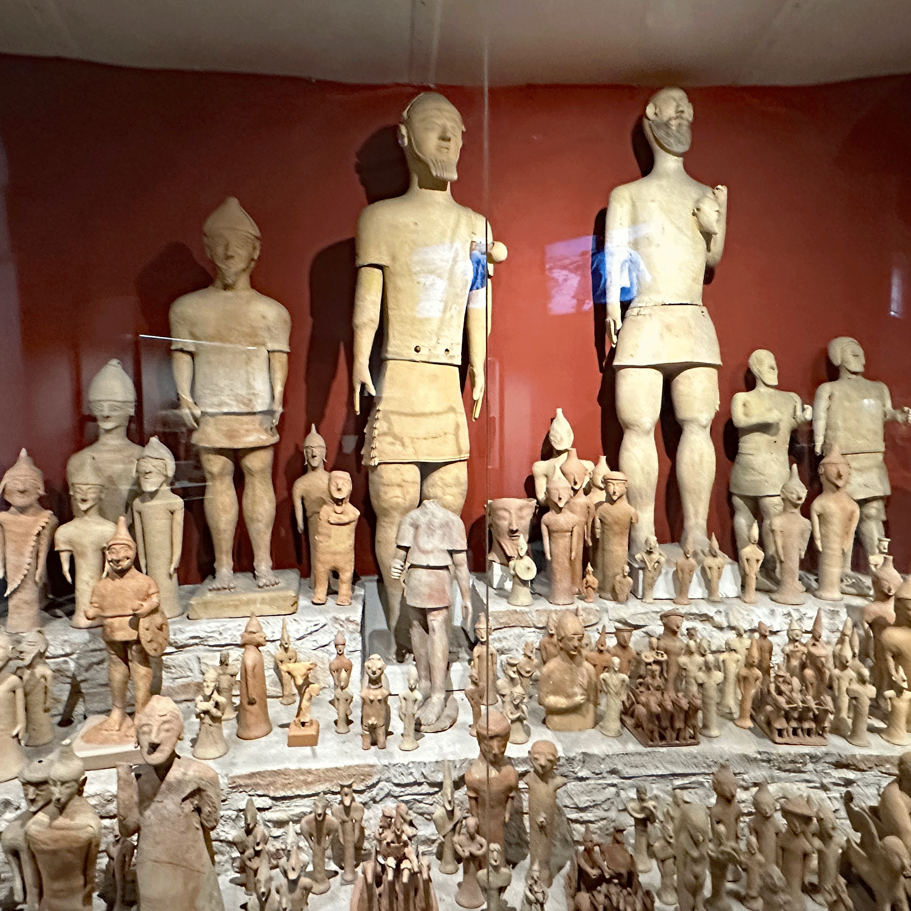 To get out of the rain, we headed to the Archeological Museum of Cyprus. This museum is a treat. Each gallery featured artifacts from a different time period in Cypriot history, so a walk through the museum is a visual walk through the island’s people from the Stone Age (10,00 BC) and Bronze Age (2400-1200 BC) through the Roman Empire (30 BC-600 AD). The audio guides are excellent , although a bit long winded for my taste. There were very few visitors, so we could take our time and get close to all of the displays. I was blown away by the scope of human history displayed here. These ancient people had a complex civilization. Cyprus was an important center for commerce during the Bronze Age, because they mined copper. This led to prosperous trading and a wealthy merchant class.