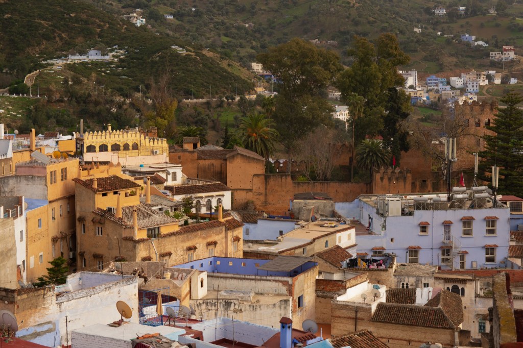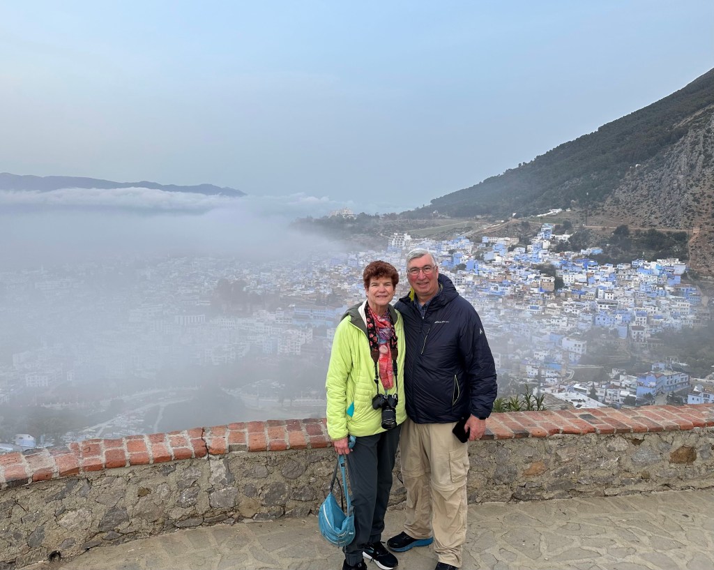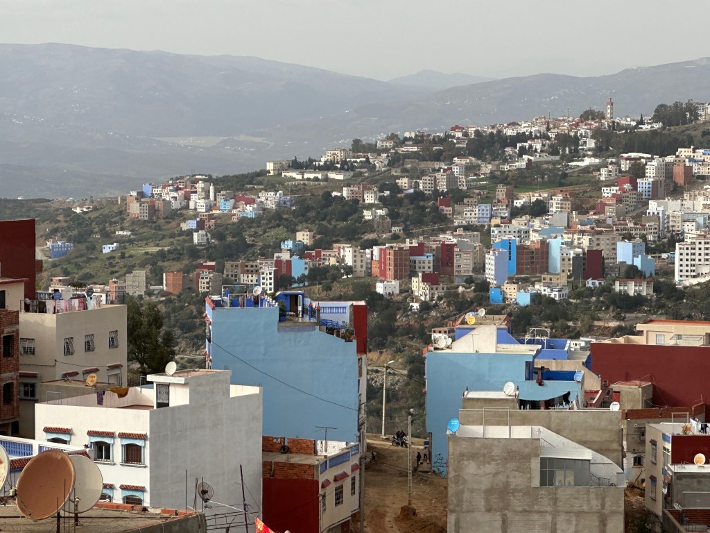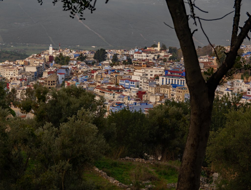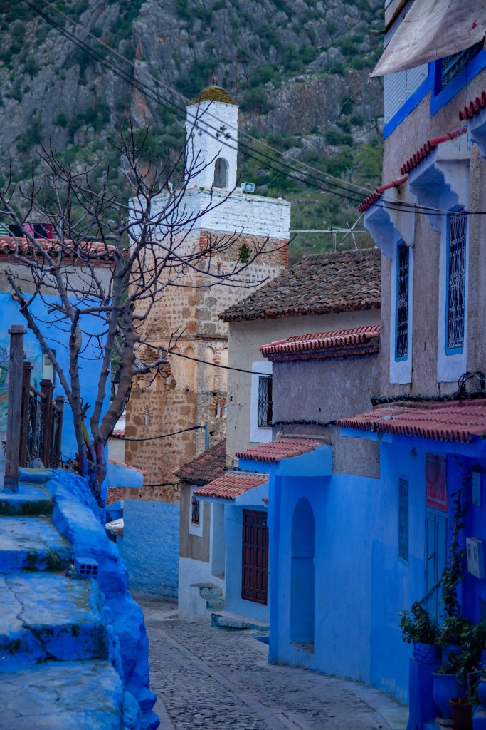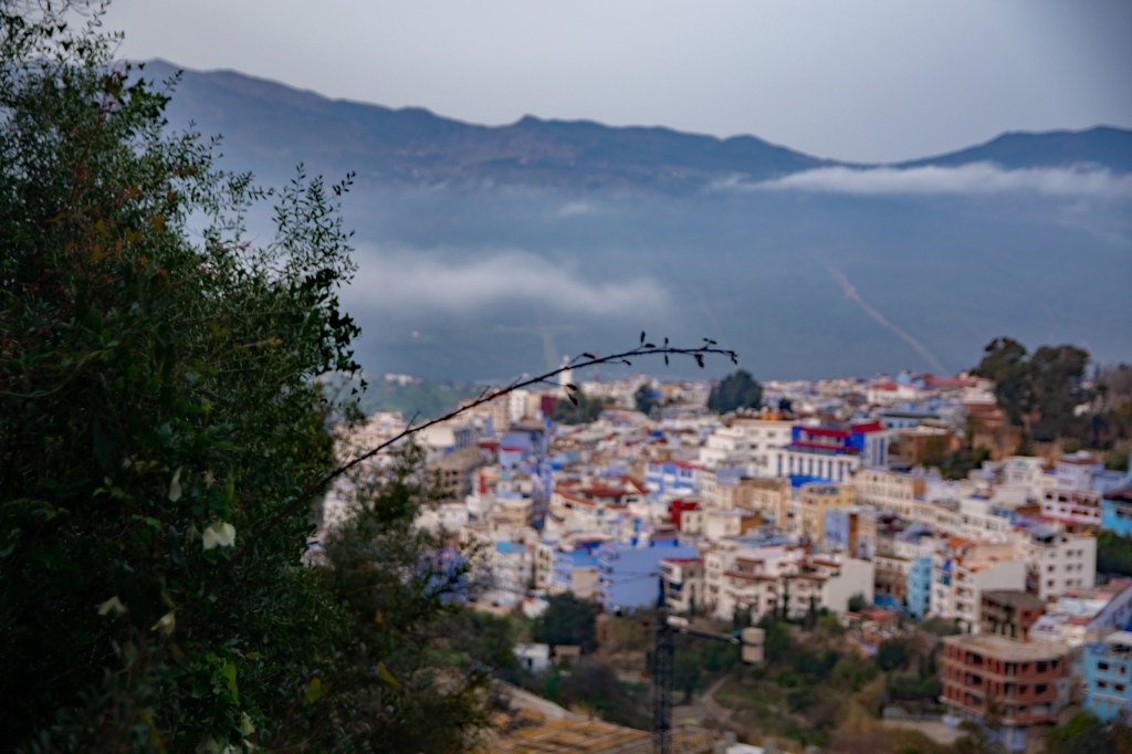 We stayed two nights at Dar Aldea, a bed and breakfast. Our daughter Christine had stayed there in 2019. The couple who run it, Ahmad and Assami, took good care of her, and she recommended it to us. On the day we arrived, Ahmad took us for a long walk around town and joined us for dinner at a local restaurant. When I told him I wanted to take photos in the morning light, he volunteered to take us up the hill to the Spanish Mosque the next morning for the sunrise. The fog was so thick in the morning that we couldn’t see much of anything. But as promised, the mist lifted. The sun really didn’t make much of an appearance, but the views were great anyway.