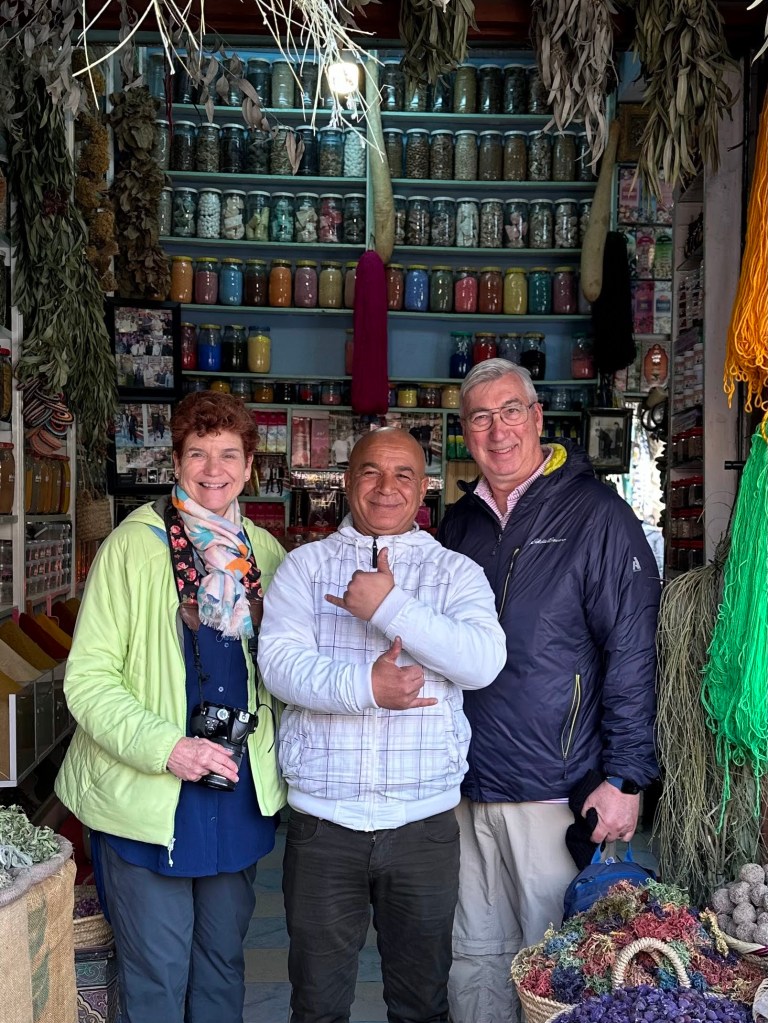 Chefchaouen’s big square Outa El Hammam is next to the Kasbah (fortress) and the city walls. We enjoyed a visit to the the 15th century structure and its museum and gardens. Once again, I was reminded of the shared Andalusian culture of Southern Spain and Northern Morocco. During the reign of the Catholic Kings and the Inquisition in Spain in the 1500’s, there was a large migration of Spanish Jews and Muslims to Morocco. The Sephardic Jews continued to speak 15th century “old” Spanish for several more centuries. From the 1920’s until 1956, the Spanish occupied Chefchaouen, and Spanish is widely spoken there today.
