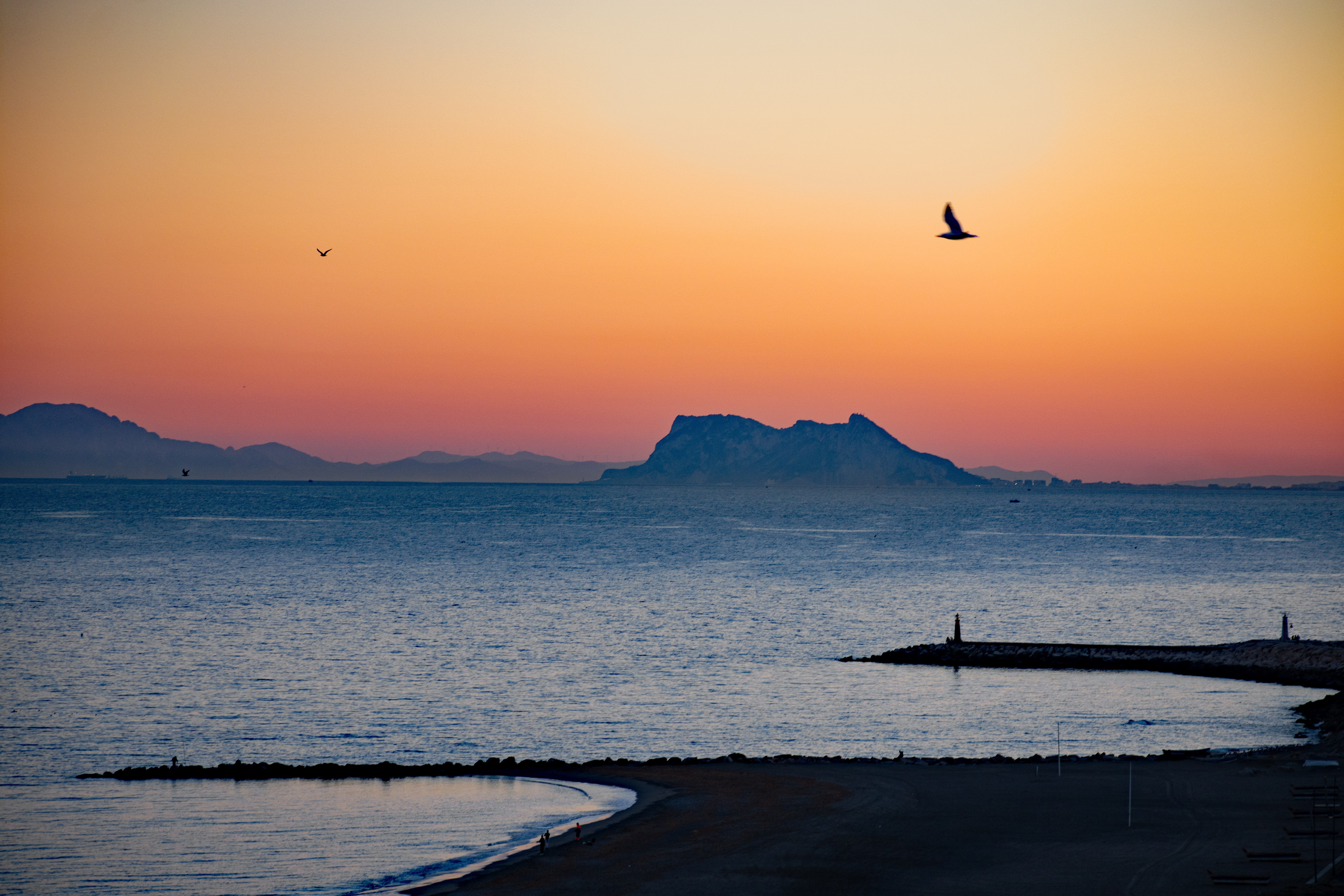 The sun rises over the Mediterranean and on a clear day you can see Gibraltar.