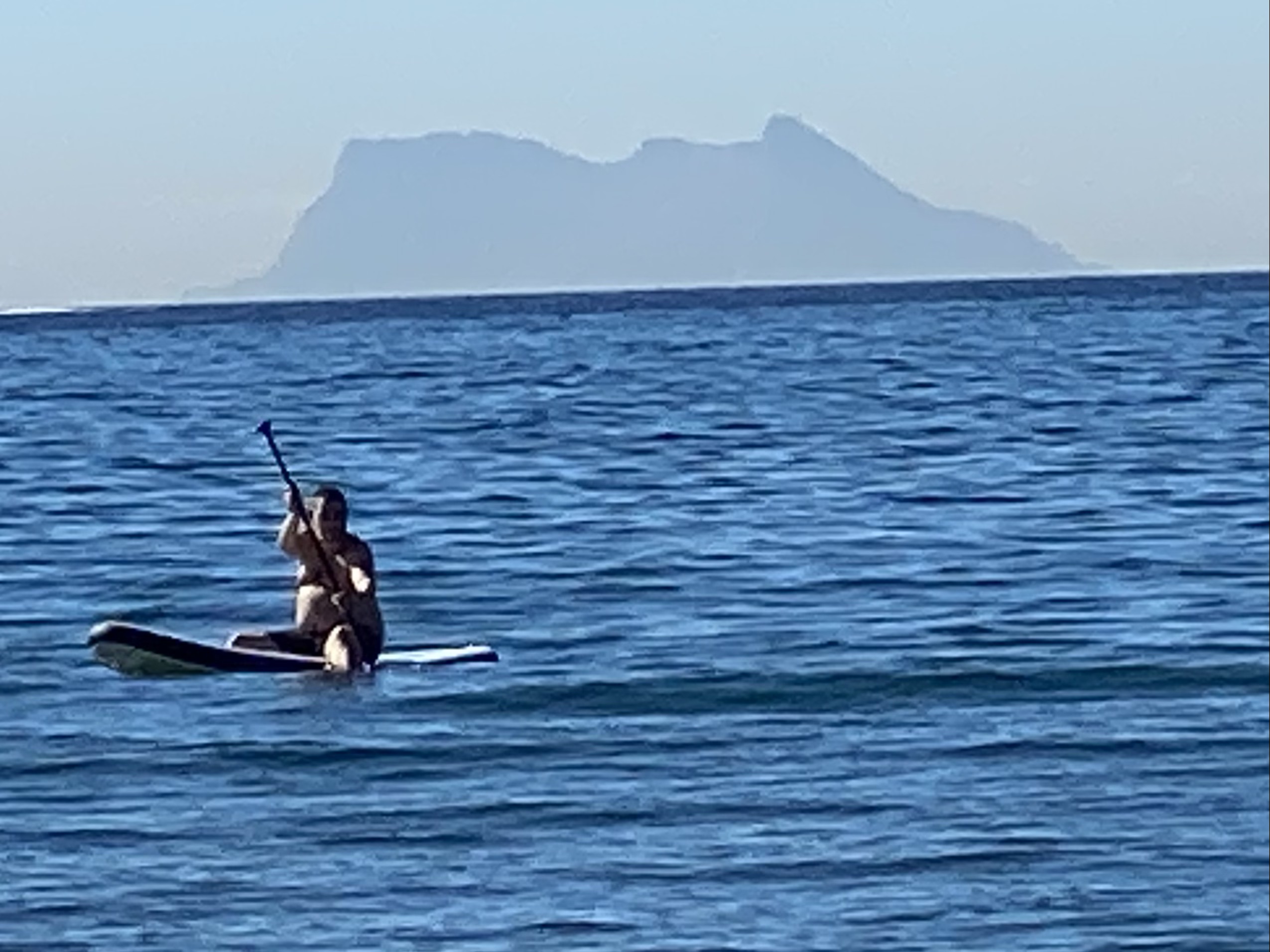 We go to yoga class with Nettie (http://www.nirmalayogaspain.com) two mornings a week. The class is outdoors on a beautiful stretch of grass along the shore. The palm trees sway above us, the water sparkles in the sunlight, and on clear days we have a fabulous view of Gibraltar and the shores of Morocco. One day, a couple of dolphins swam past. Nettie is a wonderful instructor and a beautiful person. After class, we have coffee with our yoga friends.