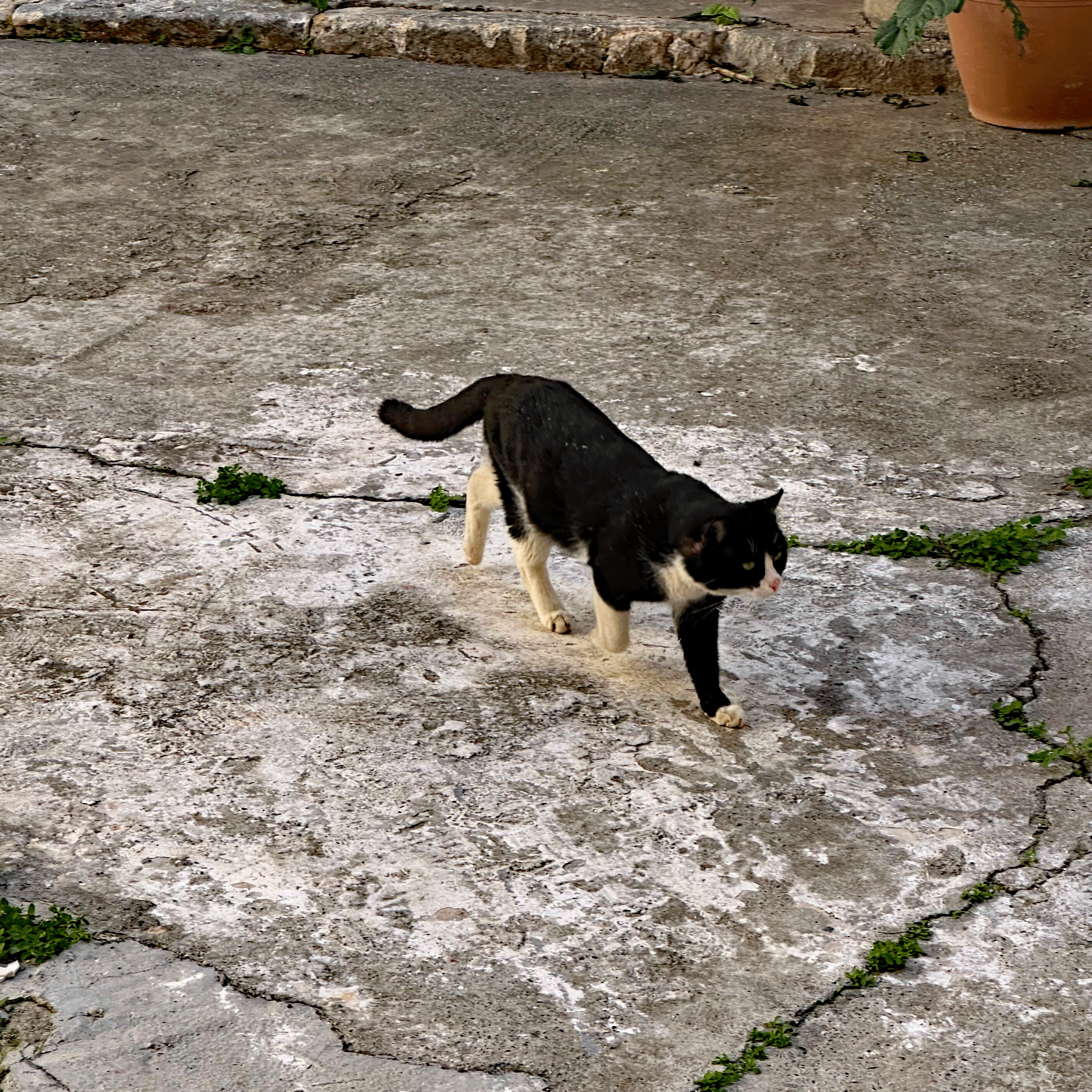 If you come to Crete, I hope you like cats. Just as on Cyprus, cats rule here. They mainly live outside and appear to have their turf. There are two that frequent our courtyard and get quite loud at times. I’m not sure if we are expected to feed them; that was not listed in the house rules. On cold nights, there is one who joins us at the door hoping for an invitation to enter. We have not succumbed, even though we once loved our own two cats.