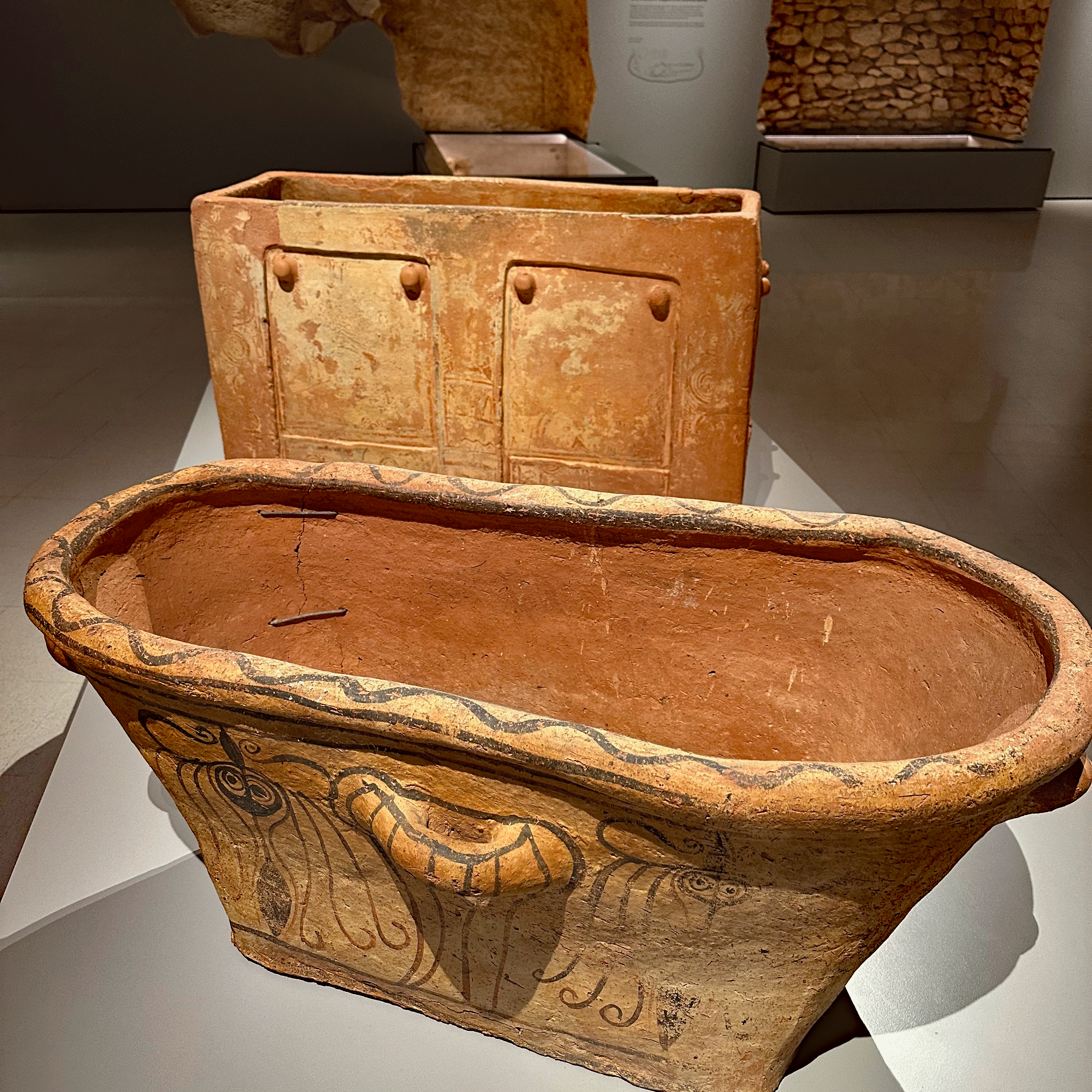 Iosif suggested we visit Chania’s Archeological Museum, so we made that our outing the next day. It was a 40 minute walk (with some uphill) to the opposite shore from the Venetian Port. The museum has a fine collection of local finds from the Stone Age through Roman times. The displays are nicely curated and the audio tour is very helpful. We especially appreciated the story of the Miser’s House in which an entire family fell victim to an earthquake in 365 AD, because instead of evacuating, they went back into the house to retrieve their valuables.
